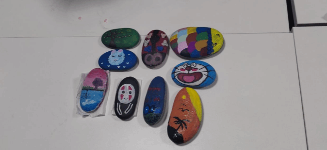 活动圆满结束,此次活动是将废物利用的理念运用到石头的彩绘中,用石头彩绘打造一个性于自己的缤纷世界。在团体带领的人带领下,同学们在形状各异的石上,风景画、卡通图案、小猫等可爱的造型活灵活现。同学们一致反馈此次活动极其有意义,希望后期可以参加更多精彩的团体活动。